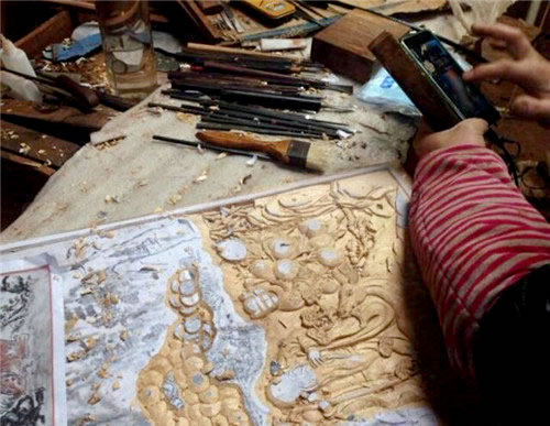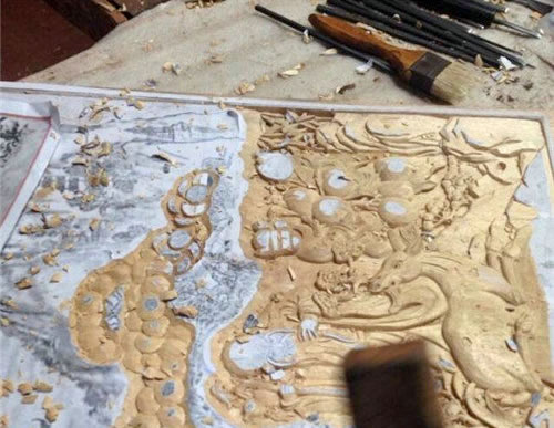 3、使用修光刀對圖案進(jìn)一步處理,這個過程又叫鏟活兒,主要是將有棱角的地方修平,突出雕刻圖案的線腳,對凹陷進(jìn)去的部分加以鏟平。