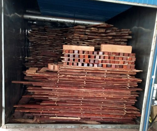 2、干燥一般分兩階段進(jìn)行,首先進(jìn)行預(yù)干,預(yù)干一般采用自然氣干,放在院內(nèi)通過(guò)空氣流動(dòng)和水分蒸發(fā)來(lái)達(dá)到氣干的目的,使紅木的含水率降低到20%—30%之間。氣干之后,再放入專門(mén)的紅木干燥設(shè)備內(nèi)進(jìn)行干燥處理,要求干燥至水分含量在 8%—12%間。
